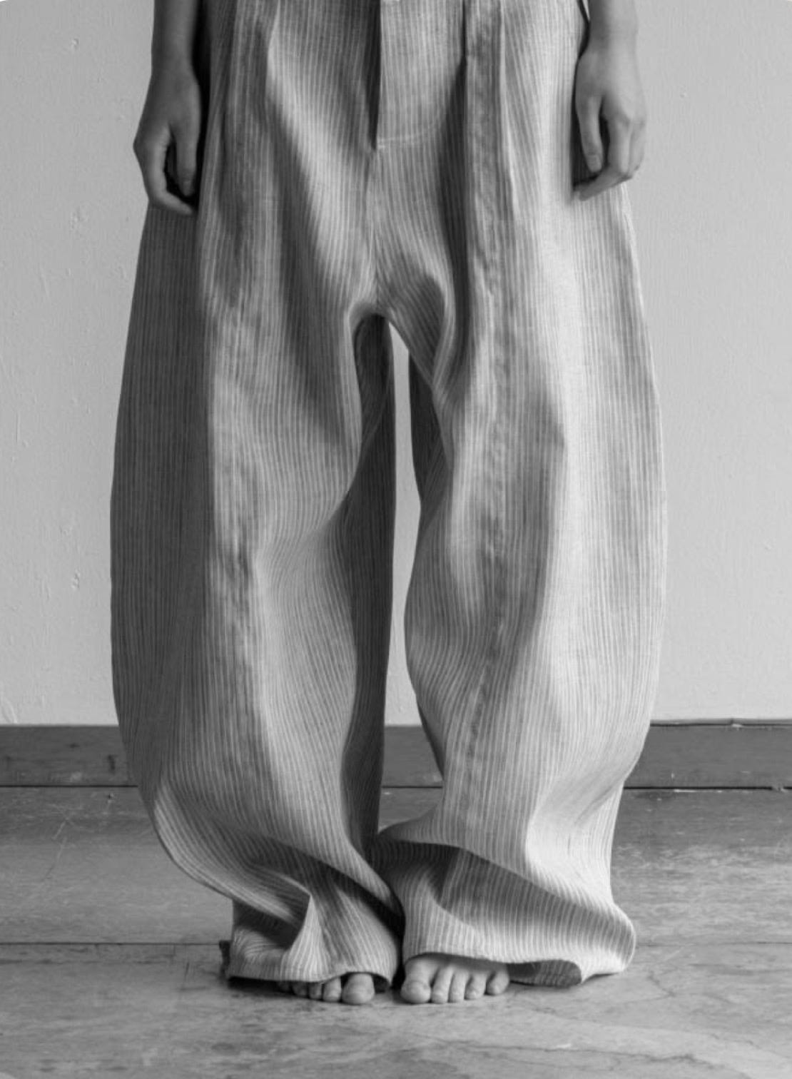 It came to be with many days getting dressed in too fancy trousers post-legal career that I hated every time I wore. From that feeling, I was able to narrow in, precisely, on a trouser that was structured enough to be intentional, casual enough to live outside an office setting.